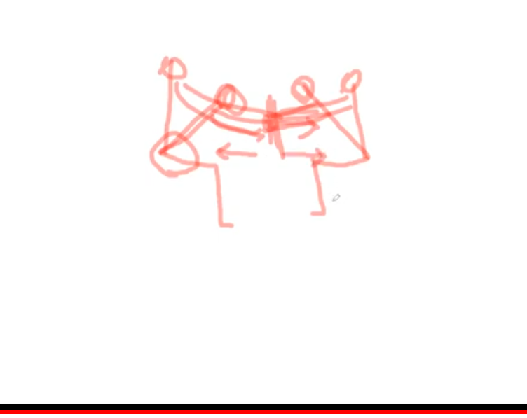대표적으로 중심선에 있는 힘들 만 보게 되면 이런 식으로 두개골과 경추가 서로 굴곡하는 힘, 다시 신전하는힘으로 걸려있다. 신전하는 힘 아래에는 앞으로 굴곡이 걸려있다. (흉추부분) 다시 아래쪽은 신전(요추부분)이다. 여기에 다시 천골이 앞끄덕임으로 굴곡하는 힘으로 있다. 그럼 장골은 다시 뒤쪽으로 신전하는 힘으로 걸린다. 그렇게 되면 이제 허벅지뼈는 약간 굴곡하는 힘으로 받아줘야 된다. 그럼 무릎뼈는 이제 앞으로 굴곡하는 힘으로 걸린다. 그리고 이제 발목과 발바닥에 있는 힘이 약간 신전하는 힘으로 걸린다. 그러면서 이제 힘이 앞쪽보다는 뒤쪽으로 떨어지는 것이다.