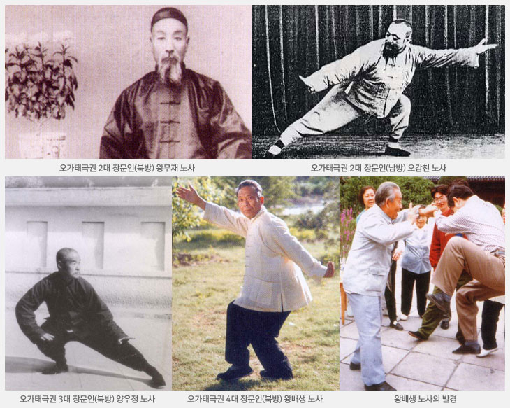 태극권 투로의 구성에 있어 오가태극권은 대가식과 소가식의 경계에 있습니다. 오가태극권의 보형은 대가식의 보형인 오행보를 취하면서도 운기의 법을 보면 손이 전신을 이끄는 소가식 방식을 취하고 있습니다. 따라서 진가태극권과 양가태극권에 비하여 보형이 좁아지고 발끝이 11자를 이루는 < 천자보(川字步) >를 취하게 됩니다. 이러한 오가태극권 특유의 운신법은 하체와 땅의 올바른 관계작용을 통해 형성된 내기를 손끝까지 연결하고 손끝을 기준으로 전신의 음양 변화를 추구합니다. 경점의 전환이 다채롭고 자유로워 의념전환 태극권이라는 별칭을 가지고 있습니다.