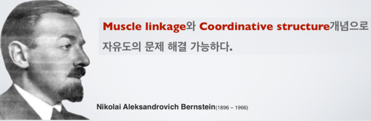 Bernstein(1967)은 자유도의 개념‘degree of freedom’을 제기하였는데, 그는 수많은 신경과 근육체계가 중추신경계에 존재하는 운동 프로그램에 의해 기계적으로 조절되는 것이 아니라 수많은 자유도를 갖고 있는 신체체계가 시간적-공간적 협응을 이루기 위해 효율적으로 자유도를 풀어가는 과정을 통해 인간의 움직임이 조절된다고 하였다. 인간의 움직임은 동작 생성에 관여하는 수많은 신체분절과 근육, 신경간의 협력작용synergy을 통하여 움직임의 단일 단위로 감소시키거나 자유도를 제한하는데 이를 협응구조coordinative structures라고 한다. 예를들어, 숙련자는 초보자들에 비해 인체 내에 존재하는 수많은 자유도를 효율적으로 제어할 수 있는 능력을 가지고 있다.