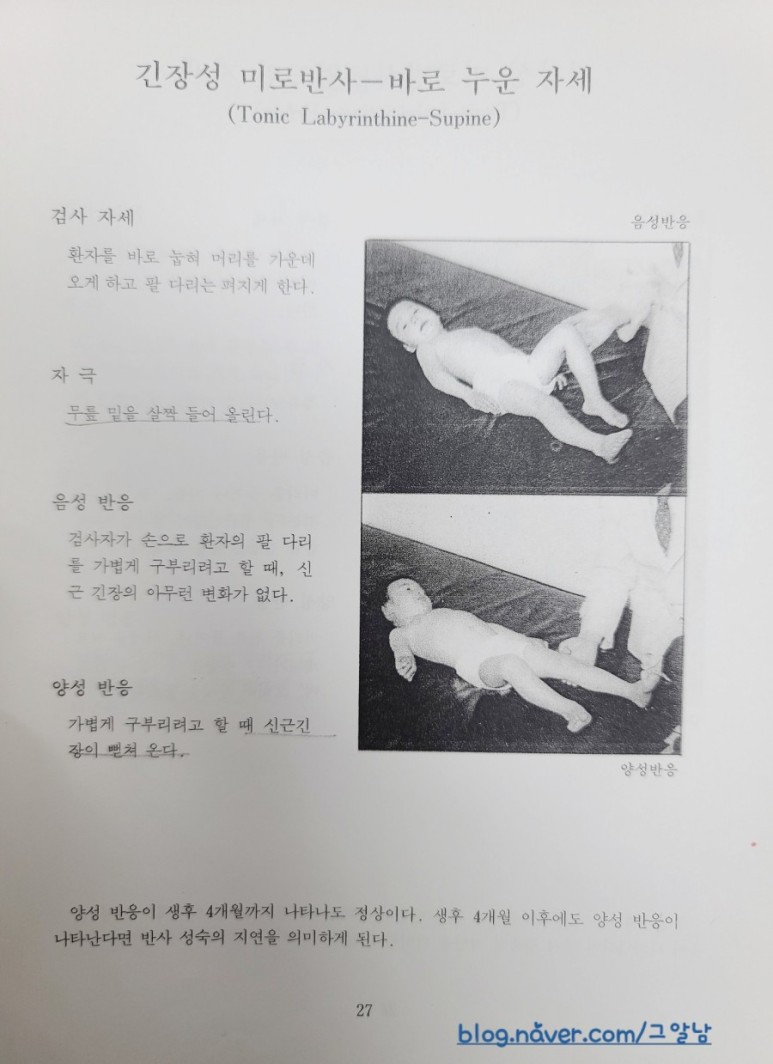 중추 신경계 발달평가를 위한 반사 검사법