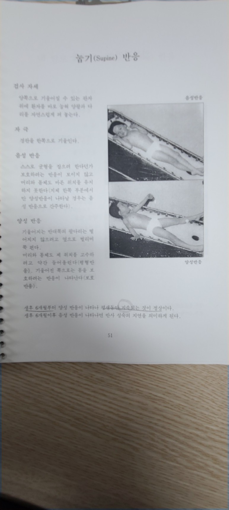 눕기(Supine)반응