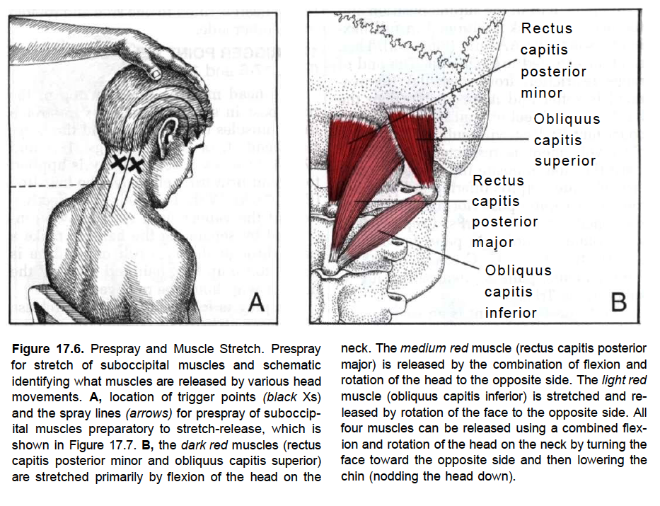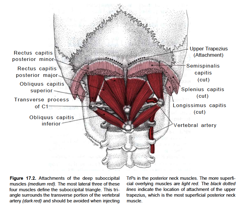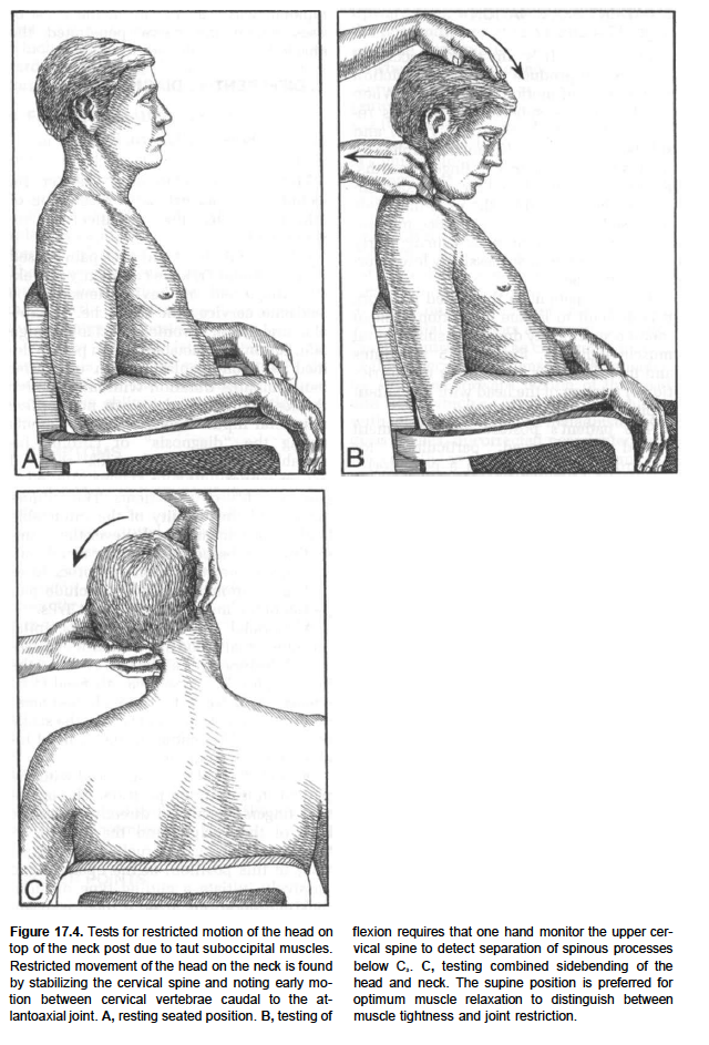 The synergists are the rectus capitus posterior major and obliquus capitis. Connective tissue bridges were noted at the atlanto-occipital joint between the rectus capitis posterior minor muscle and the dorsal spinal dura. Similar connective tissue connections of the rectus capitis posterior major have been reported recently as well.[1] The perpendicular arrangement of these fibers appears to restrict dural movement toward the spinal cord. The ligamentum nuchae was found to be continuous with the posterior cervical spinal dura and the lateral portion of the occipital bone. Anatomic structures innervated by cervical nerves C1-C3 have the potential to cause headache pain. Included are the joint complexes of the upper three cervical segments, the dura mater, and spinal cord.