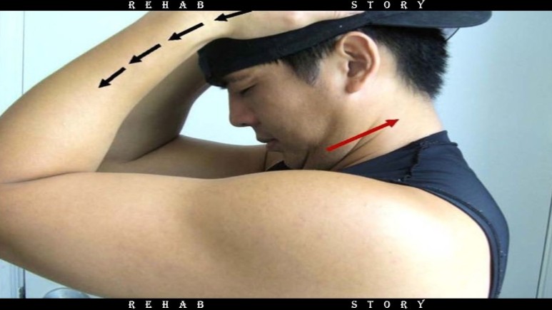 여기서 환자가 턱을 당겨 주면(Chin tuck) 근막을 신장 시킬 수 있습니다