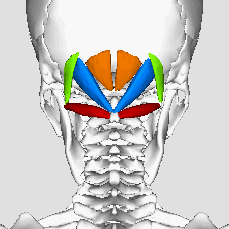 As the muscles of the two sides pass upward and lateralward, they leave between them a triangular space, in which the recti capitis posteriores minores are seen. Its main actions are to extend and rotate the atlanto-occipital joint.
