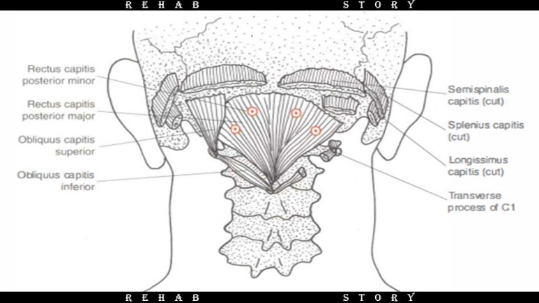 -> Rectus capitis posterior major,Rectus capitis posterior minor, Obliquus capitis superior muscle, Obliquus capitis inferior muscle (대후두직근, 소후두직근, 상두사근, 하두사근)