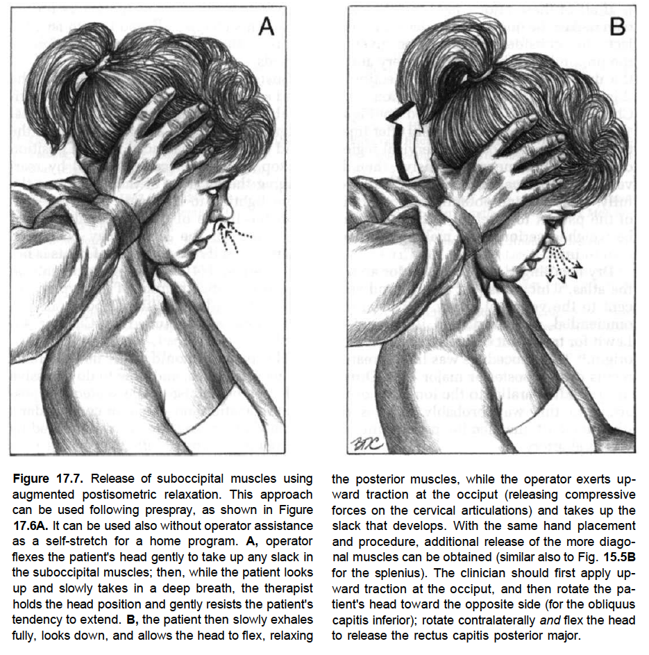 감압 치료 기법으로 후두하근을 촉진하고 치료하면 됩니다
