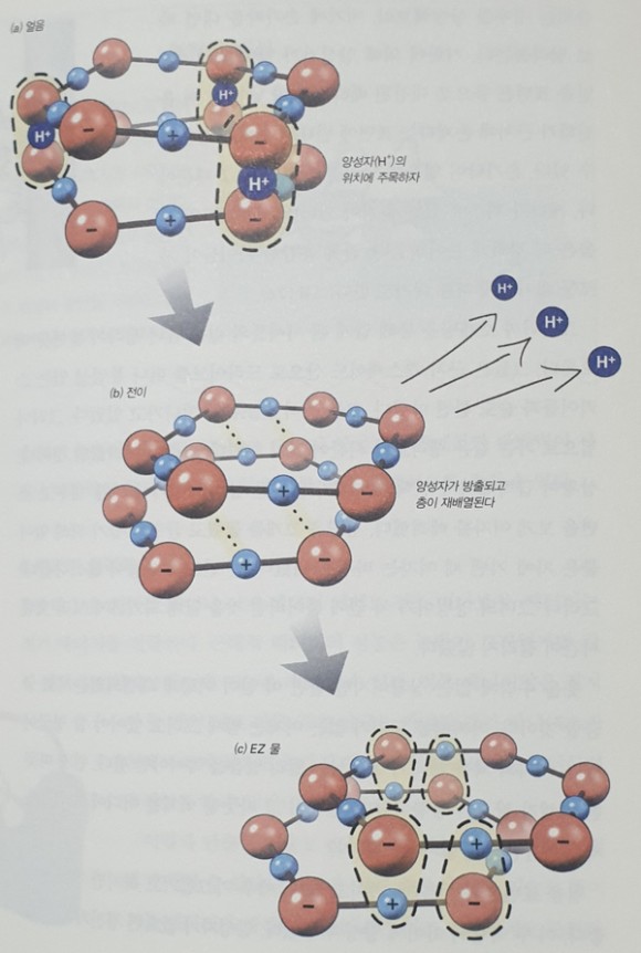 배타구역 물의 구조와 얼음의 구조는 기본적으로 같다. 그리고 이러한 구조는 음전하를 띈다.