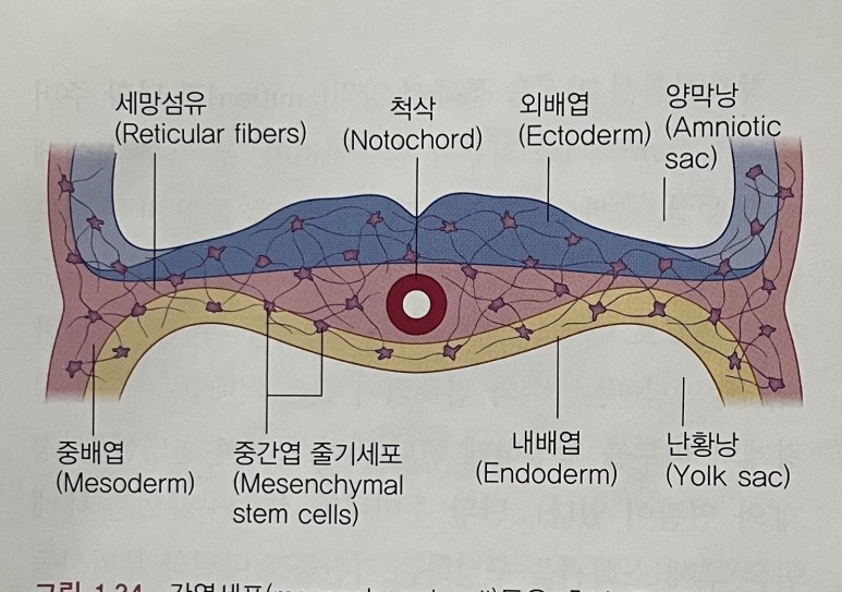 간엽세포들은 섬유아세포 및 다른 결합조직세포들을 만드는 배아줄기세포이며,배아의 모든 세포들 사이로 이동하여 세 개의 층 모두에 존재하게 된다.