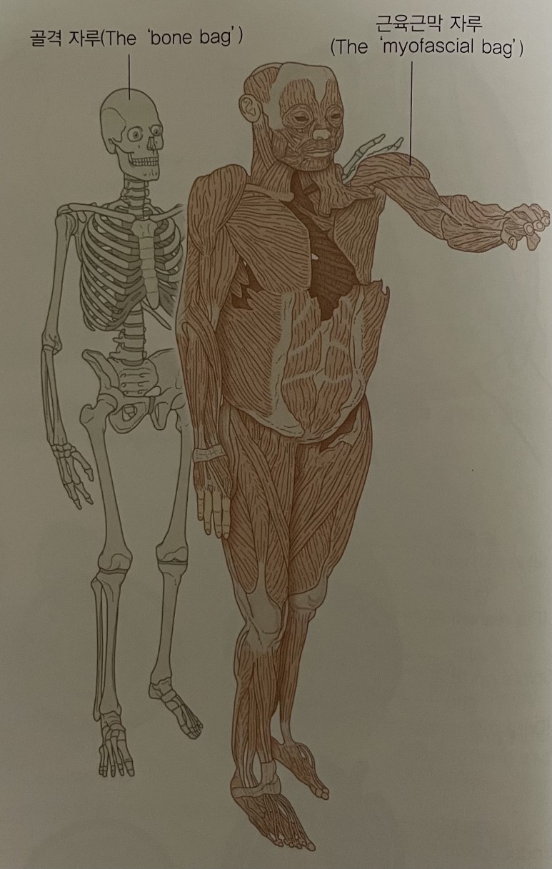 인체에는 오직 하나의 근육만이 존재한다고 볼 수 있는데, 하나의 근육이 600개 이상의 근막 주머니 속에 담겨 걸려 있는 것이다.