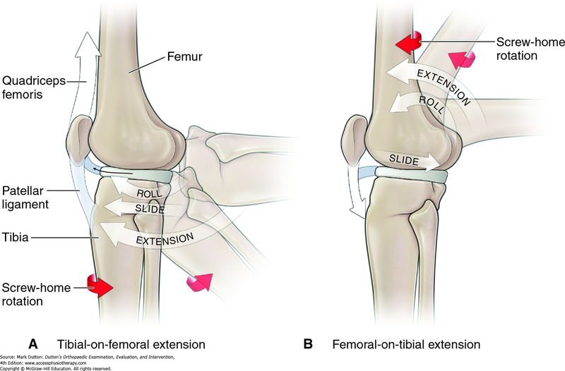무릎이 굽혀질 때는 정강이 위의 연골판 위에서 허벅지뼈가 미끄러짐과 구름이 동시에 일어나면서 움직입니다.