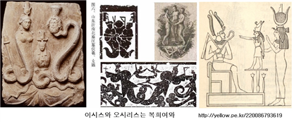 아래 그림은 단군신화의 쑥과 마늘에서 소개했던 ‘이시스와 오시리스는 복희 여와’라는 글에 나오는 그림인데, 복사가 허용되지 않아서 검색창에서 다운받았습니다. 허락 없이 사용하는 점 사과드리며, 용서를 구합니다.