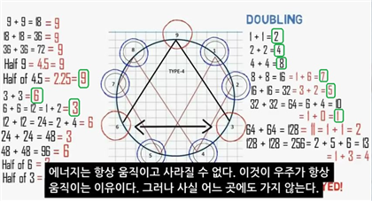 더구나 숫자가 무한히 확장되면서도 수비학의 간단한 공식에 따라 자연수로 귀환하는 모습을 보여줌으로써, 아홉 개의 간단한 자연수가 복잡한 우주를 관리하는 방식을 보여주는 점은 테슬라의 천재성을 웅변하고 있다고 할 수 있겠네요.