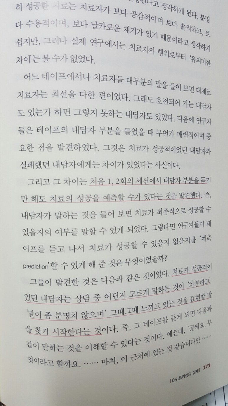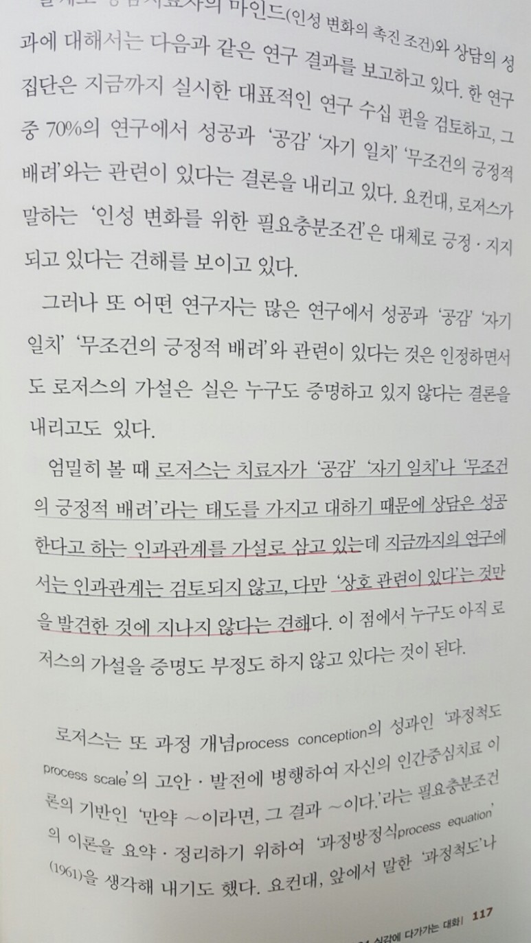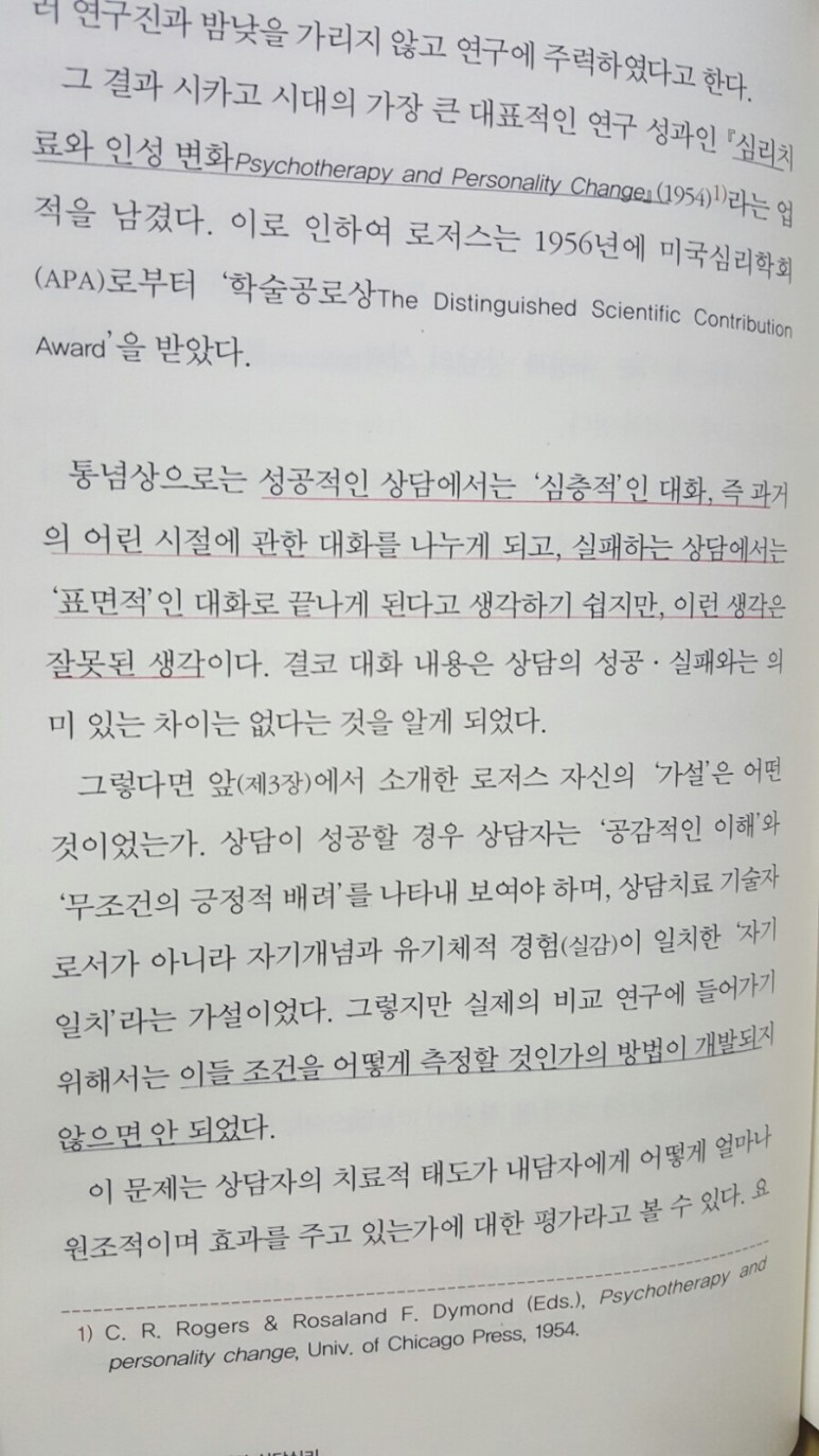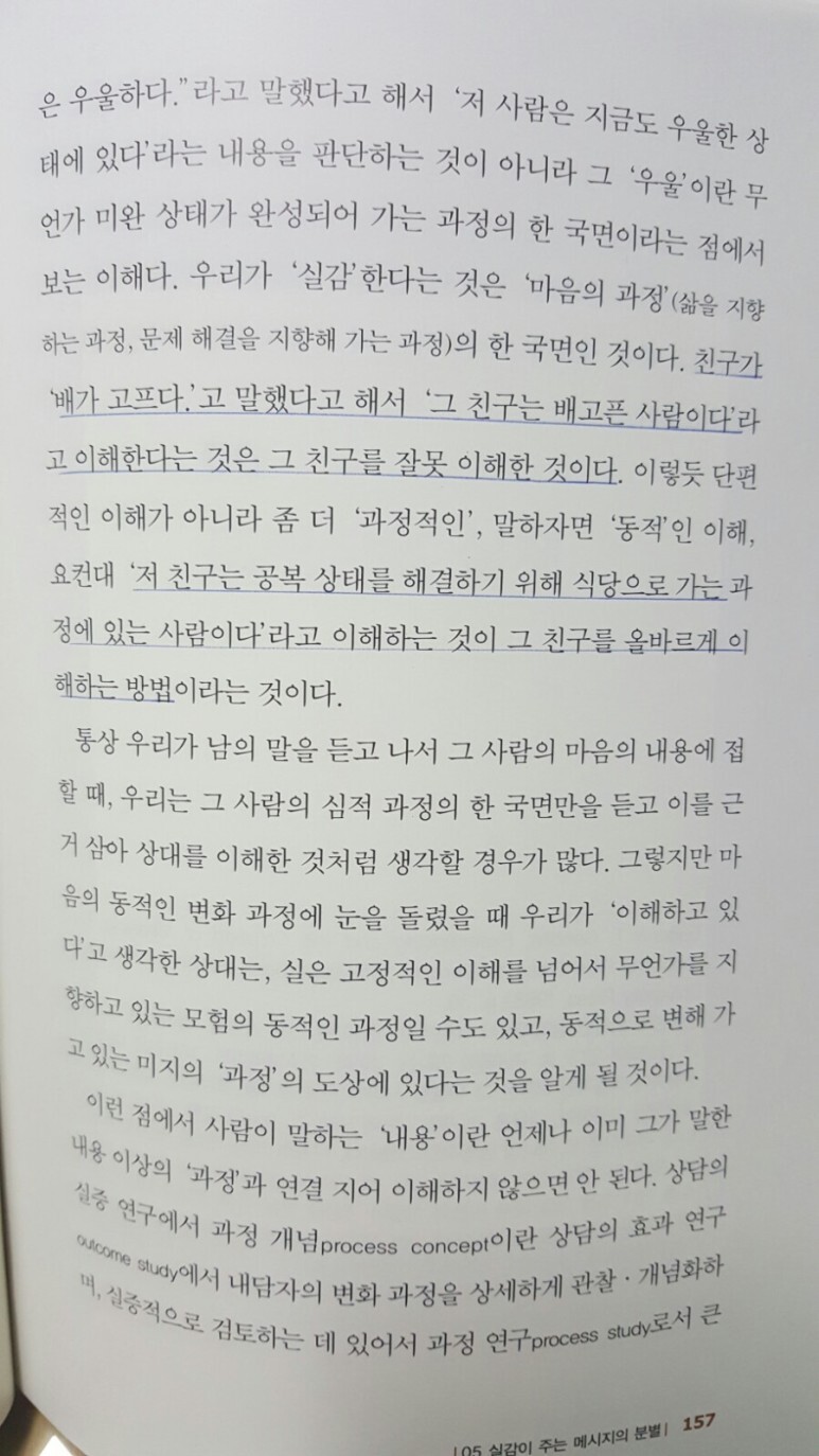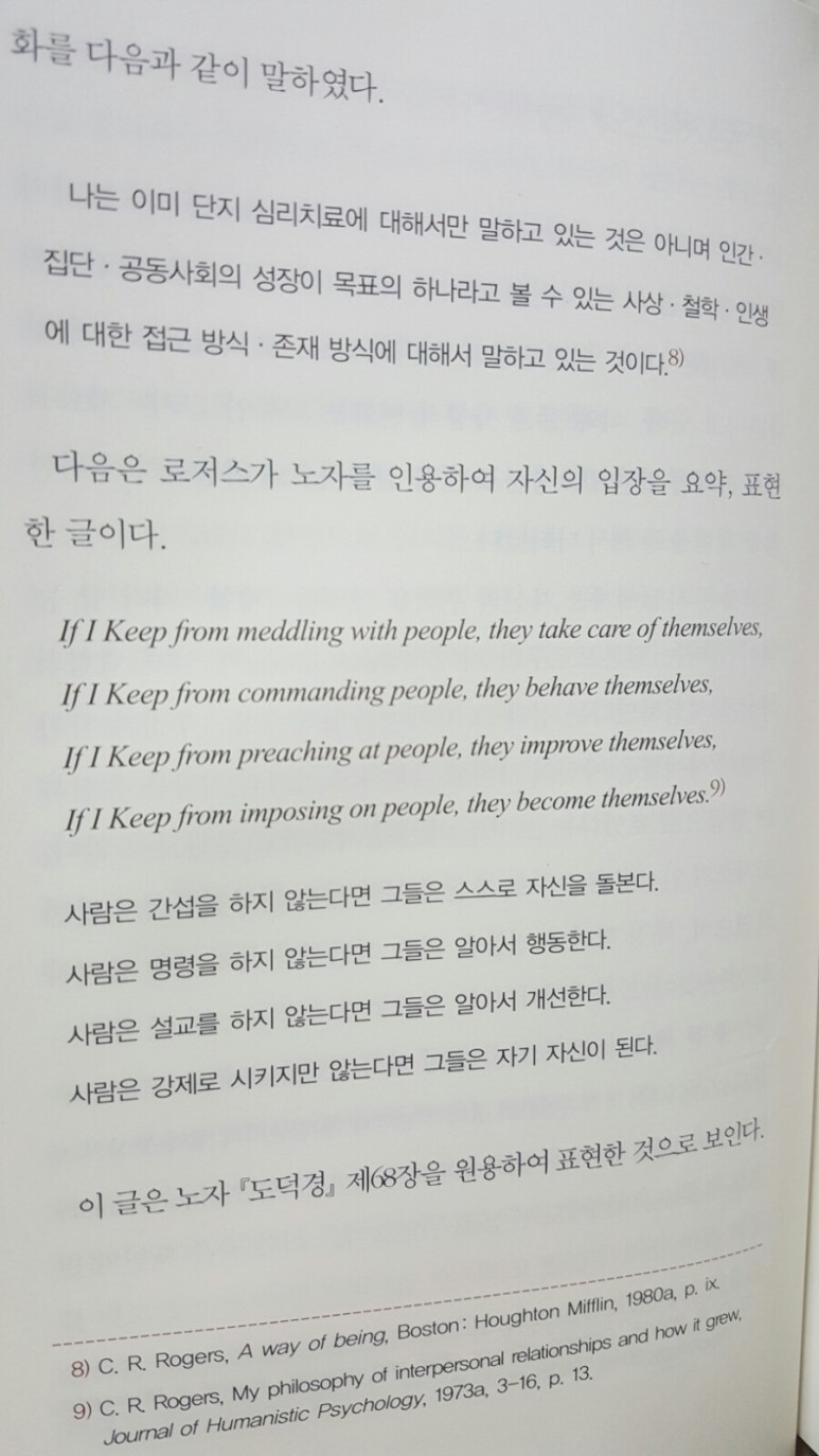 이론적인 부분이 없진 않지만, 일반인도 이해하기에 그리 어렵지 않으리라 봅니다. 여러 내용 중에 체험과정척도(EXP)에 관한 설명이 특히 좋았습니다. 인간중심상담이론의 칼 로저스, 포커싱 심리치료의 유진 젠들린에 관심있는 분들은 한 번 읽어보세요.