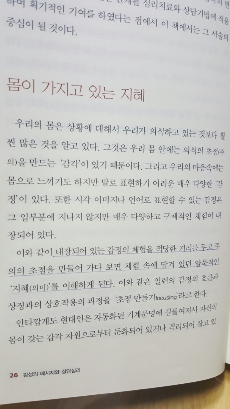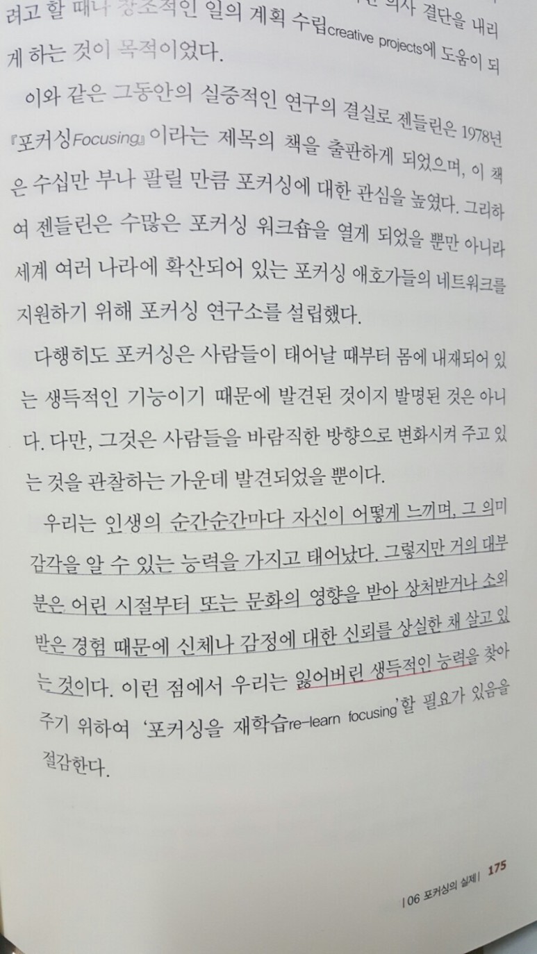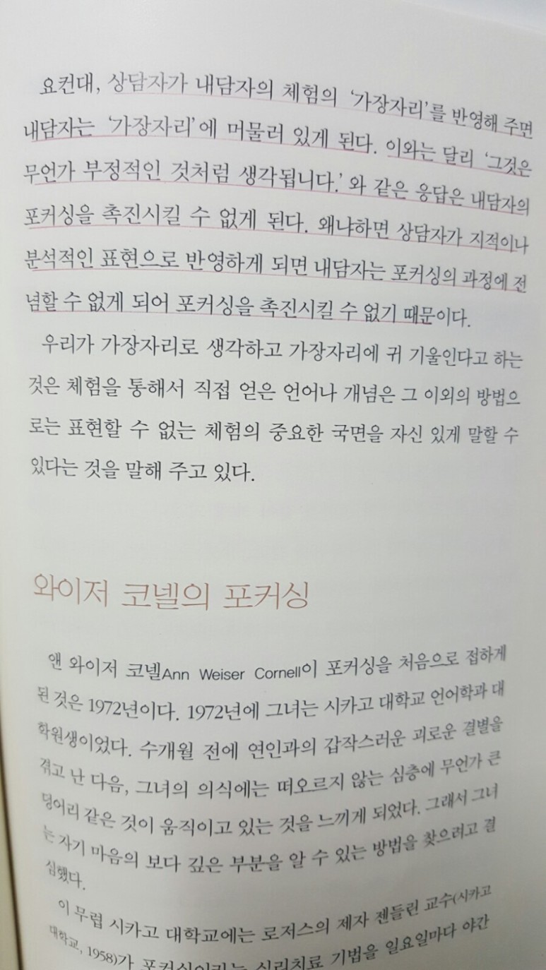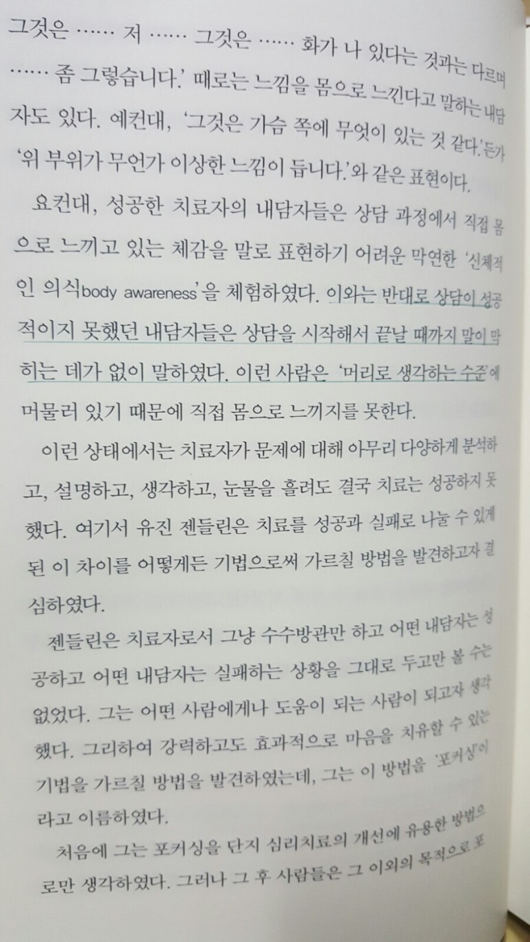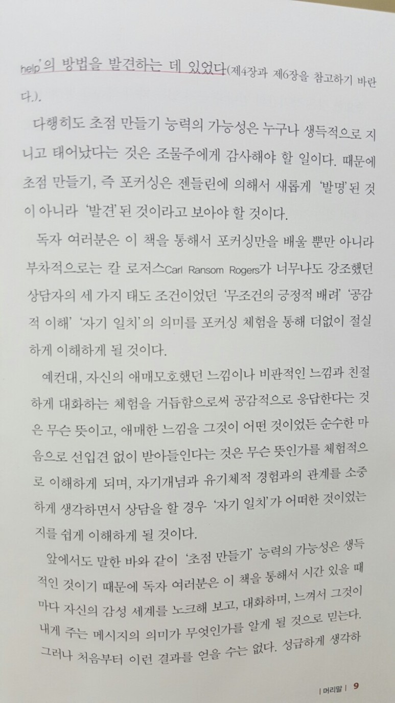 임진년, 계사년 무렵 주은선 교수님의 포커싱 체험심리치료를 접하고 포커싱 심리치료 관련 책은 오랜만입니다. 사실 유진 젠들린보다는 인간중심상담의 칼 로저스를 더 알고 싶은 마음에 집어들었습니다.