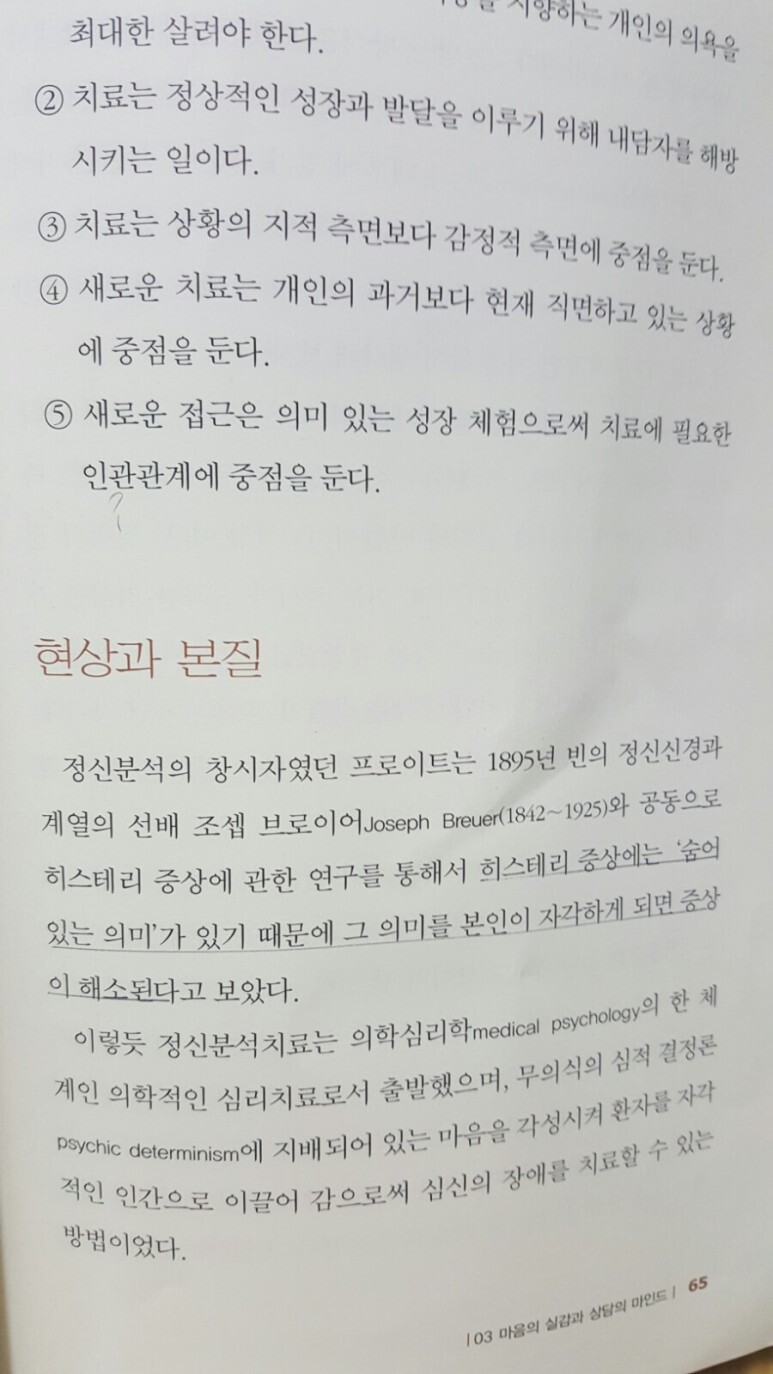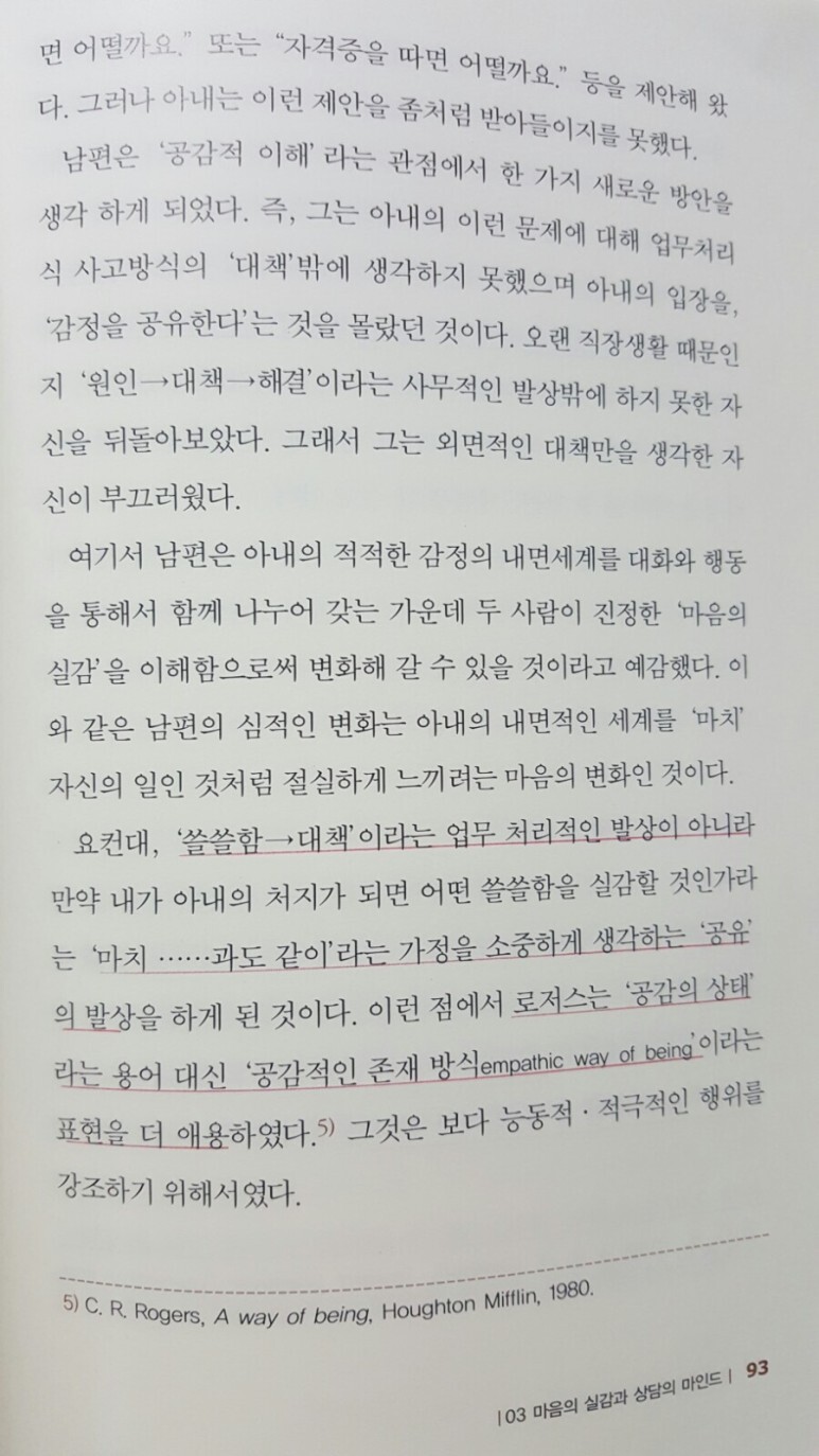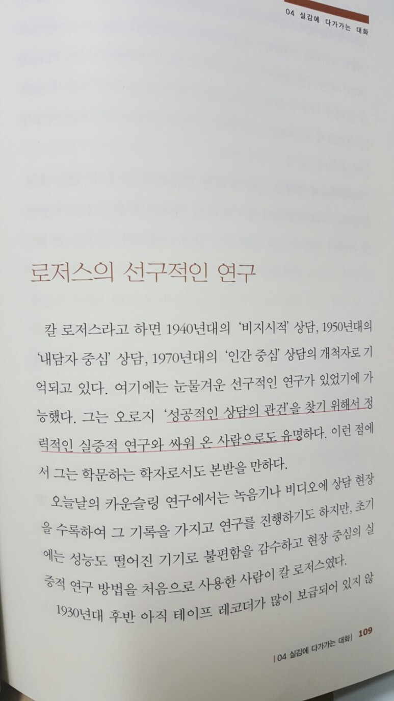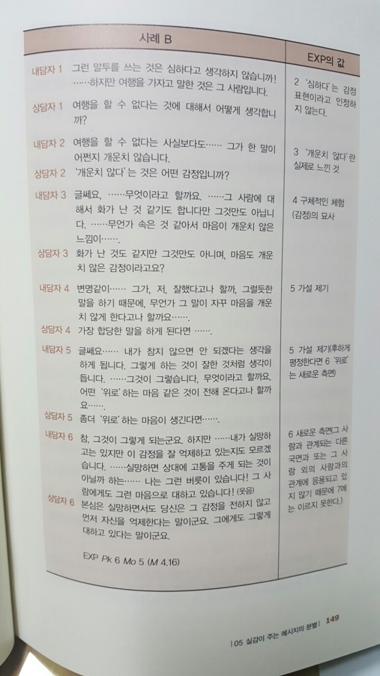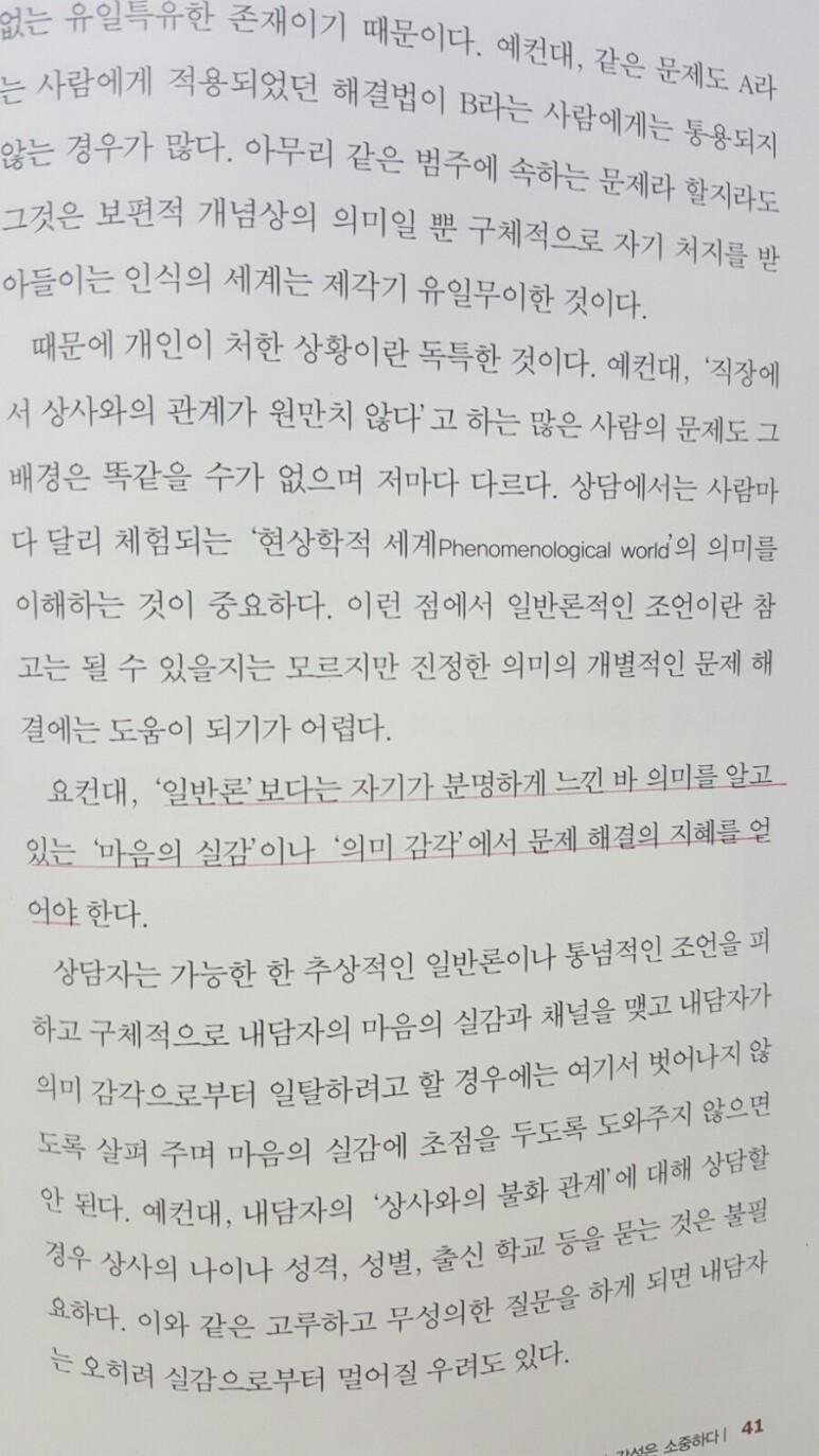 ※ 감성의 메시지와 상담심리 p.65 아홉번째 줄 "인관관계에 중점을 둔다"에서 '인관관계'는 '인간관계'의 오기인 듯 하네요.