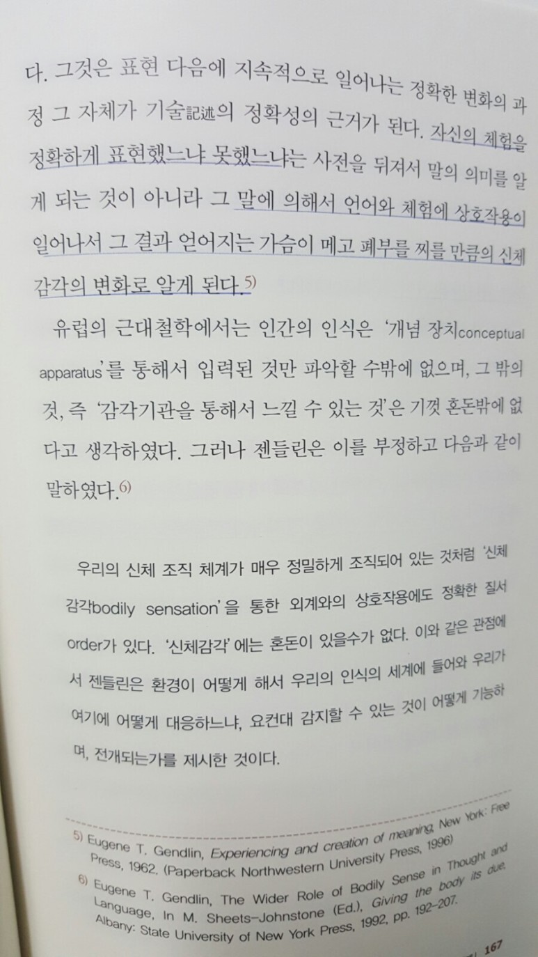 그 말에 의해서 언어와 체험에 상호작용이 일어나서 그 결과 얻어지는 가슴이 메고 폐부를 찌를 만큼의 신체 감각의 변화로 알게 된다.