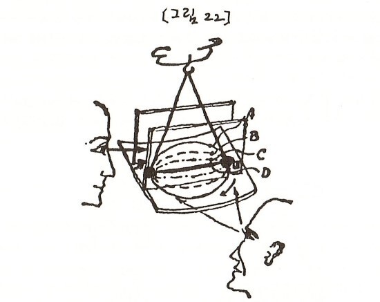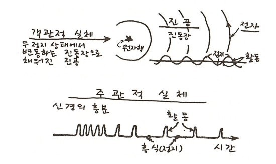 진동자 역할을 하는 우리의 신체로 다시 돌아가자. 신체는 매초 7회씩 상하로 진동한다. 신체가 정지점에 도달할 때마다(매초 14 회) 관찰자는 주관적 시간을 통해서 객관적 공간 속으로 매우 빠른 속도로 팽창한다. 이러한 팽창을 하는 데 사실상 거의 시간이 걸리지 않는다.