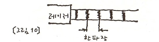 이렇게 되면 이 물결 무늬는 간섭 무늬가 되지 못하고 따라서 정보의 전달자 역할을 할 수가 없다. 여기서 우리는 <간섭성(千涉性)> 에 대해 알아볼 필요가 있다. 남비 속에서 일어난 물결의 파동과 마찬가지로 음파(音波)나 광파(光波)에 있어서도 매우 드물긴 하지만 단일 파장을 가진 일정한 파동이 있다. 이렇게 진행 방향이 일정하고, 규칙적이며, 단일 파장의 파동을 가진 빛을 우리는 <간섭성 빛> 혹은 <동조성 빛> (coherent lights)이라고 한다.3과 같은 뜻이다. 여기서는 <동조성>이라는 말 대신에 간섭성으로 통일했음을 밝힌다. 역주" border="0">