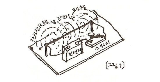우리 한번 약간 애매한 방법이긴 하지만, 소리를 만들어보자. 짧은 전선줄을 마련해서 건전지에 이은 다음, 중간에 스위치를 설치해보자 [그림 1]. 스위치를 연결하는 순간 다음의 세 가지 일이 일어난다고 우리는 학교에서 배웠다.