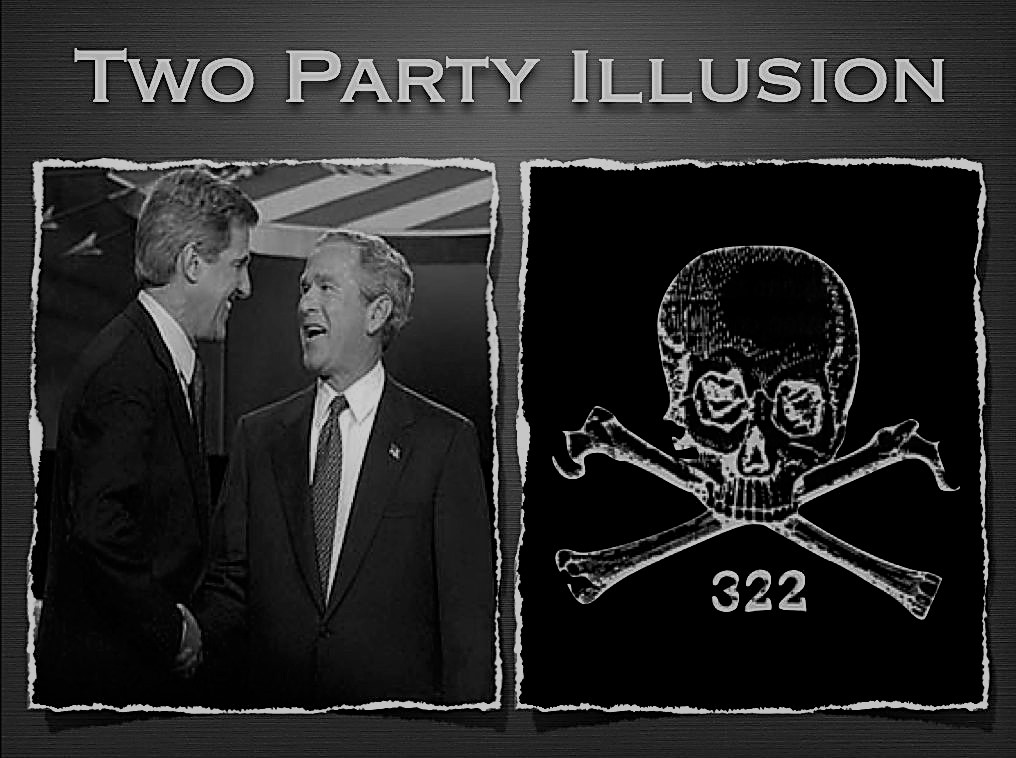 같은 실체를 가진 두 세력이 서로 싸우고 있다는 허상일 심어주는 전략입니다. 가장 대표적인 사례로 민주당과 공화당의 대결 구도를 들 수 있습니다. 이 두 정당에는 차이가 없습니다. 사실 하나의 정당이고 배후에서 국제 뱅커들과 비밀세력 지배자들이 양당을 통제하며 모든것을 조종하고 있는 시스템이죠. 사진처럼 가장 큰 당 들은 같은 몸통에 있는 두 개의 날개입니다. 우리가 아무리 투표해도 같은 새는 변하지 않습니다. 이 사실을 보여준 사례가 존 케리와 조지부시의 2004년 대선 사례입니다. 두 사람 다 스컬&본즈 라는 엘리트 비밀단체 출신입니다. 오컬트 지식을 활용해서 대중을 조종하는 흑마법사들이죠. 스컬&본즈의 심볼을 분석하자면 해골은 '사고'가 이루어지는 영역이고 X자 뼈는 우리의 '행동'입니다. 의식의 삼위일체인 3개 요소중 '감정'이 빠져있습니다. 생각과 행동은 있지만 신성 여성성인 감정을 제거 했습니다. 이 자들은 목표 달성을 위해 감정을 제거한 자들입니다. 연민의 감정을 느낄수 없습니다.