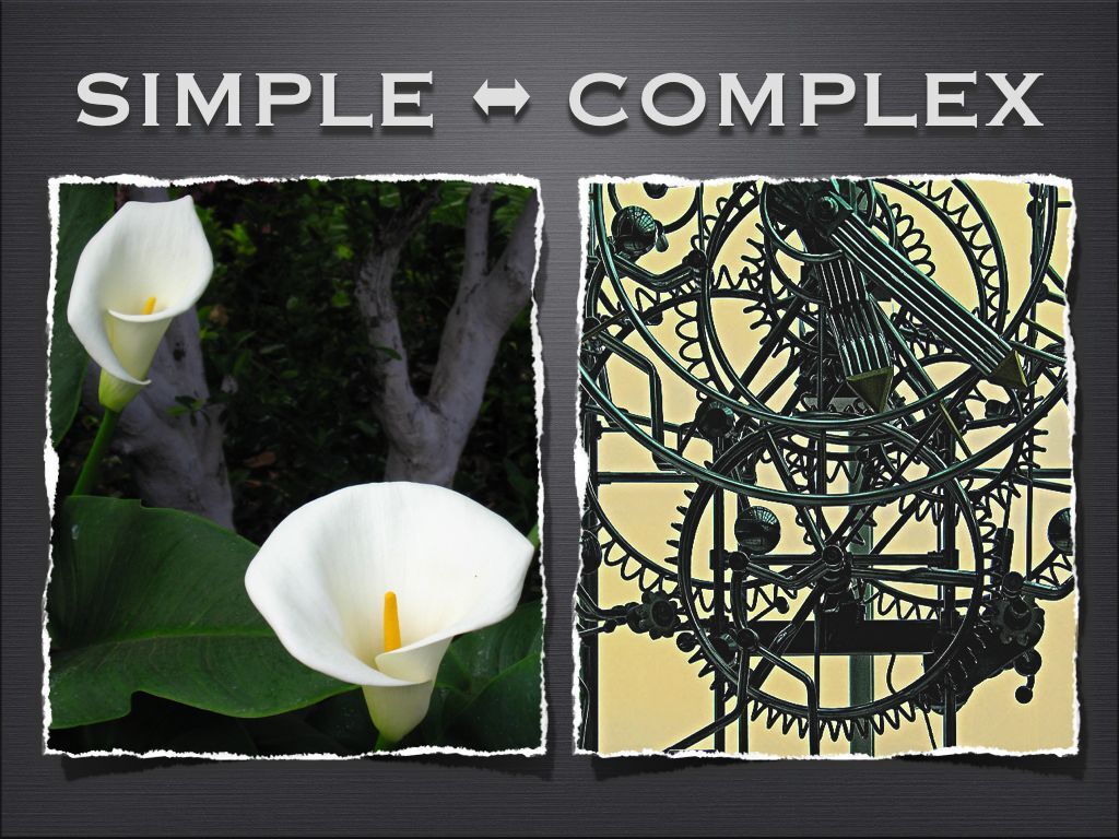 가장 흔한 혼란기법은 단순한 것(simple)을 복잡하게(complex) 만들어버리기입니다. 전체를 보면 많이 꾸며진 것 같고 많은 정보가 담겨 있지만 개별 구성요소들은 매우 단순합니다. '진리'는 항상 단순합니다. 진실은 절대로 복잡하지 않습니다. 자연의 모습처럼 우아하고 단순합니다. 야생의 동물들은 병에 걸리지 않는것을 생각해 보세요. 엘리트 세력은 진리를 아는 것은 매우 어렵다는 쪽으로 이야기합니다. 그러면 사람들은 너무 복잡하고 이해하기 어렵다는 이유로 진실의 추구 포기를 유도할 수 있습니다.