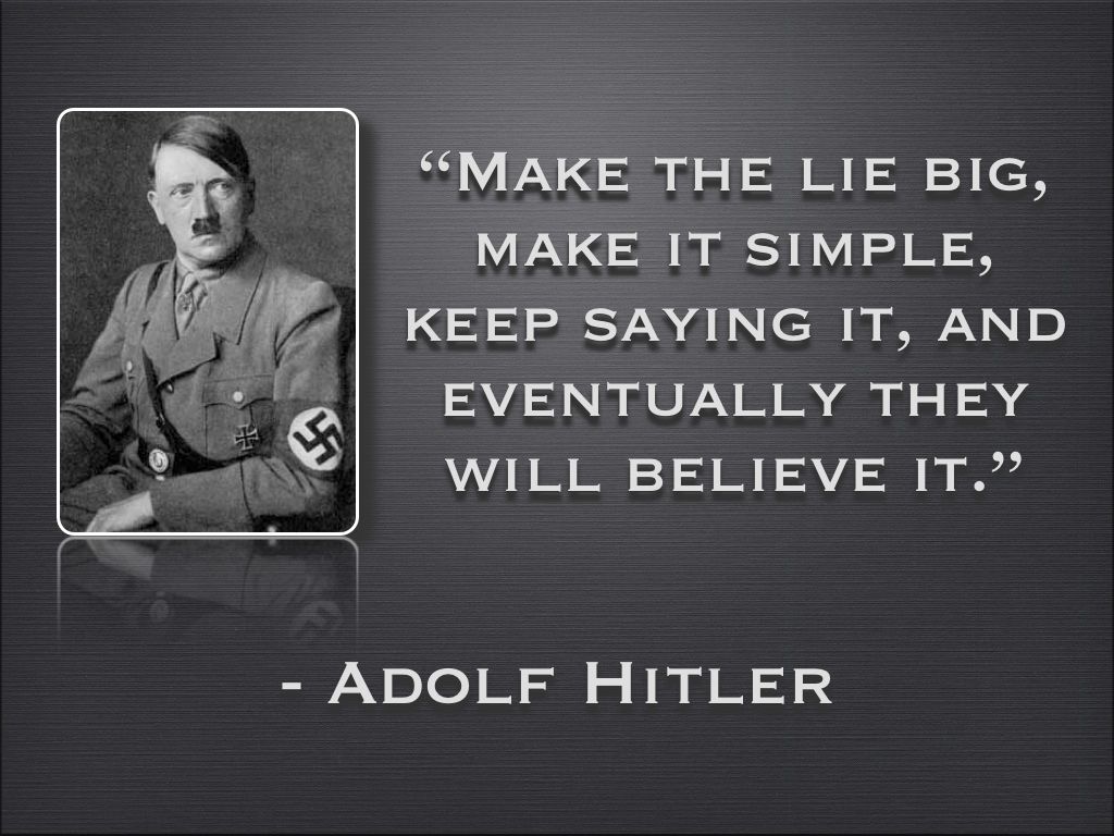 큰 거짓말을 계속해서 단순하게 만들어 주장하면 그들은 결국 믿게된다. - 아돌프 히틀러