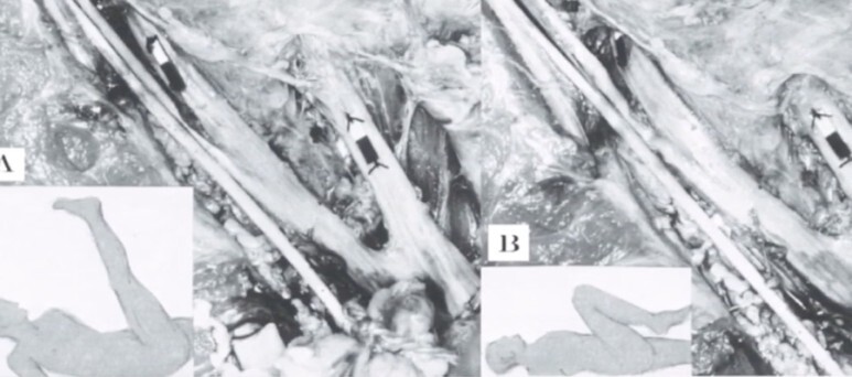 반대로 무릎을 구부리면 신경다발이 느슨해지는 것을 볼 수 있다.