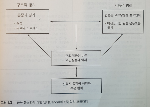 - 근육의 긴장은 반사적으로 대항근을 억제하고 근육 불균형을 만든다.