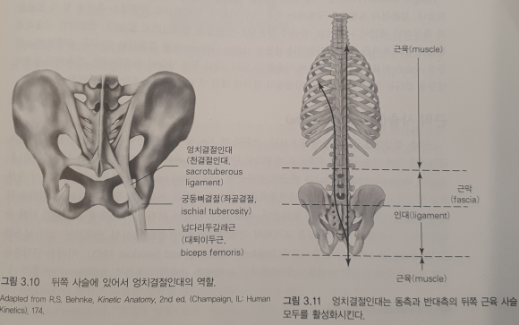 - 보행시 대둔근의 약화 -> 엉덩관절 신전 위해 기립근의 반대작용을 이용하여 보상한다. 이는 엉치결절인대에 의해 발생(대퇴이두근)
