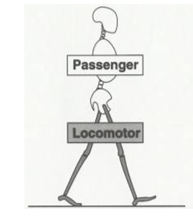 전통적으로 다리가 보행에 대해 관여하고 척추는 하지골반대 위에 승객(Passive Passenger)