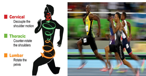 바로 하체로 추진력을 얻는 것이 아니라 척추, 즉 체간이 움직임을 조절하고 그로 인해 추진력을 만든다는 것인데요.