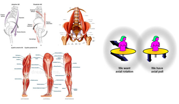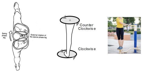 보행은 골반이 앞뒤로 회전해야 가능한데 다리에서 만들어지는 힘은 주로