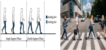 보행시 발 뒤꿈치닿기동안(Heel strike)동안 가해지는 운동에너지는 보행자모델에서처럼