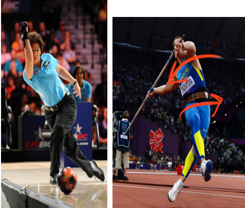 예를들어 위 사진의 운동모습처럼 볼링이나 창을 던지는 동작수행시에 이동과 힘의전달을