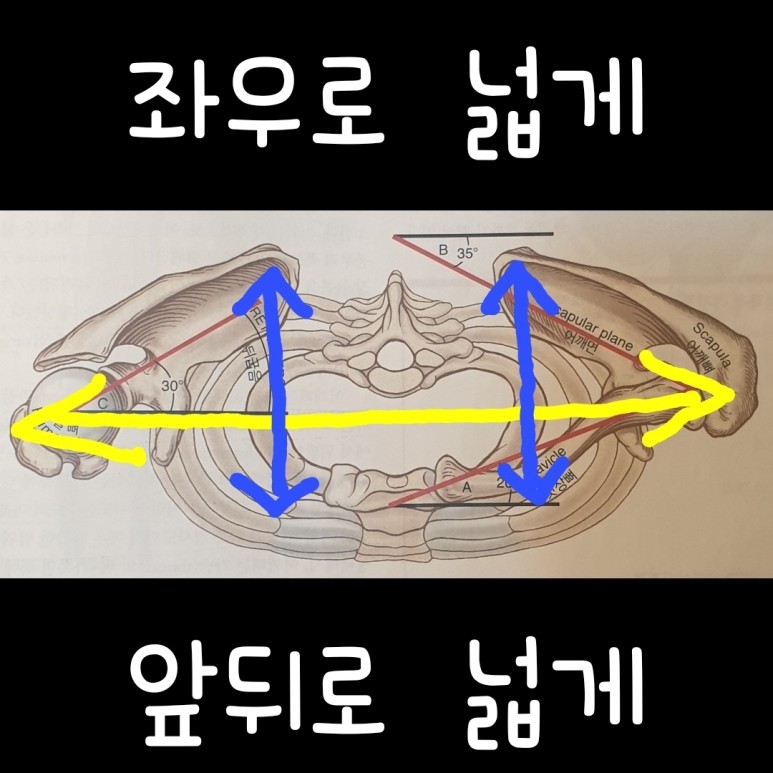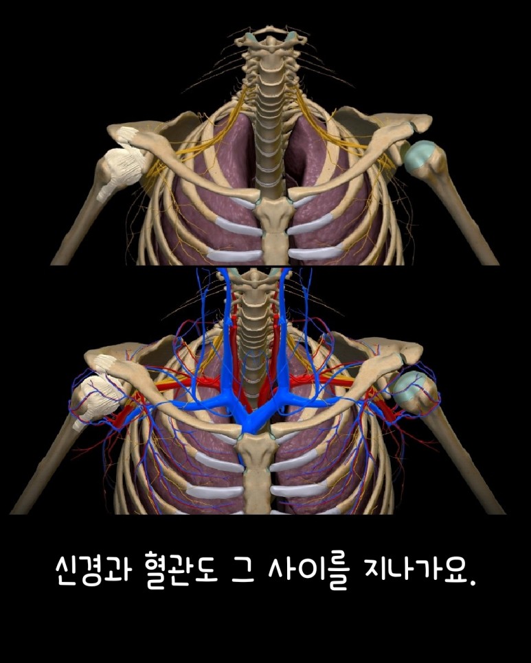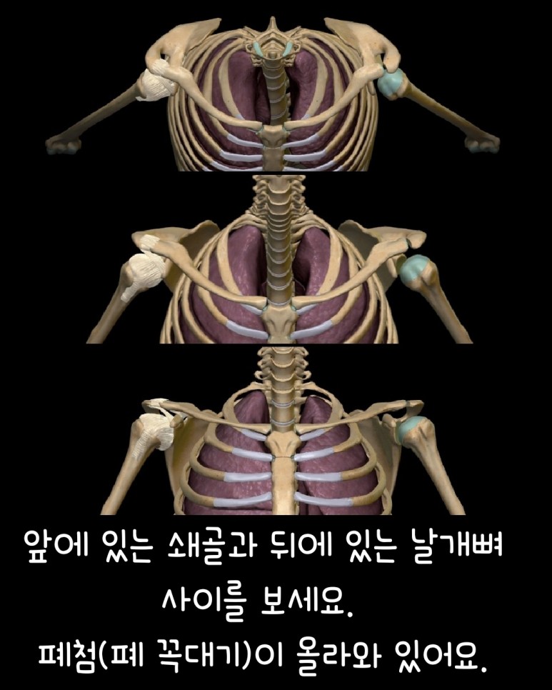 손으로 쇄골과 날개뼈를 만져보고 위의 그림들을 보고 그 사이 공간을 상상해보고 느껴보세요. 좁고 ...