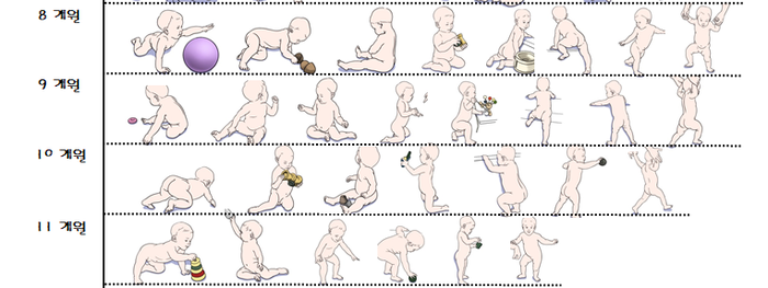 기초적인 움직임을 8개월까지 습득하였고