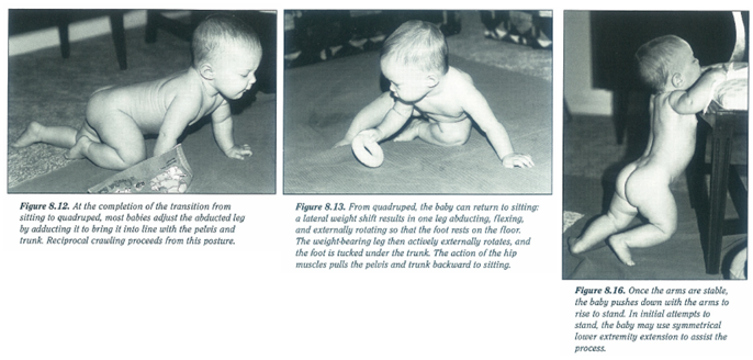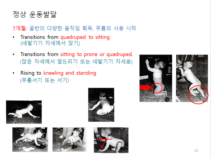 (배밀이, 앉기, 무릎서기, 네발기기, 반무릎서기, 서기, 옆으로 걷기 등등등...)을