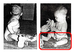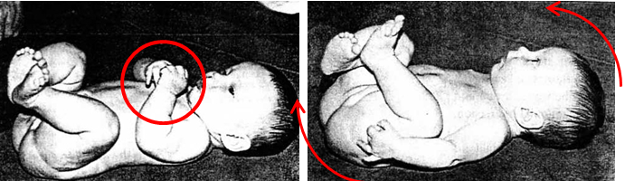 하지만 생리적 굴곡을 이완한 후, 아가들은 스스로 다시 다리를 들어 유지하는 자세를 취합니다.