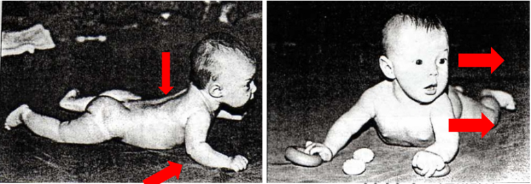 위의 사진처럼 아가들은 출생후 시간이 지나면서 머리를 공중에 두고 유지할수 있게 됩니다.