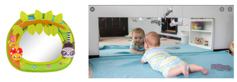 1) 머리를 들고 유지 (베이비 거울, 초점책, 다양한 장난감)