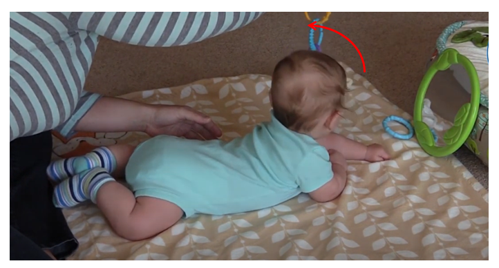 2-1) 장난감의 위치를 머리 앞에서 조금씩 옆쪽으로 이동: 눈동자의 이동 및 머리 회전을 유도