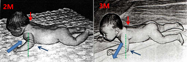 3 개월 수준의 운동 발달에서 아가는 1) 몸의 중심을 알고 2) 머리를 공중에 들고 유지할 수 있으며, 3) 머...