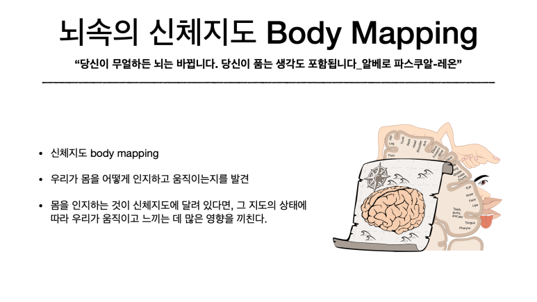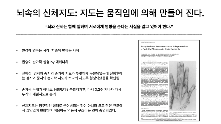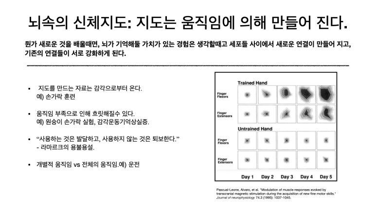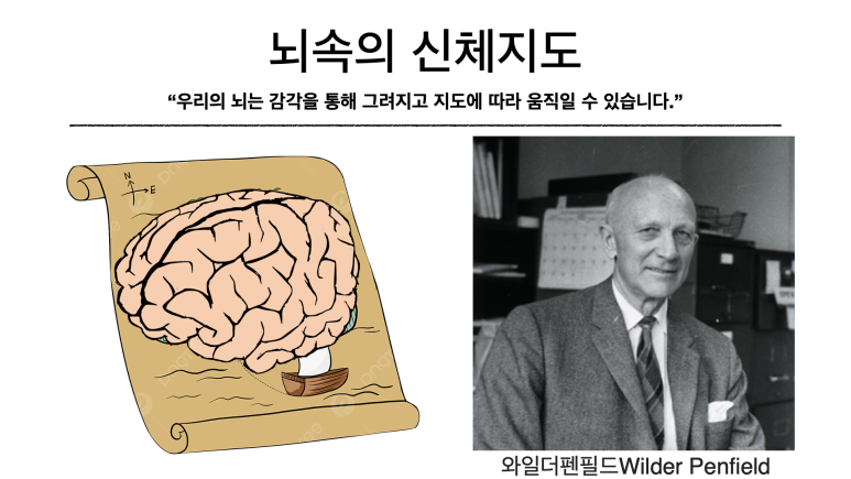 "우리의 뇌는 감각을 통해 그려지고 지도에 따라 움직일 수 있습니다. 뇌속의 신체지도 1. Brain map...